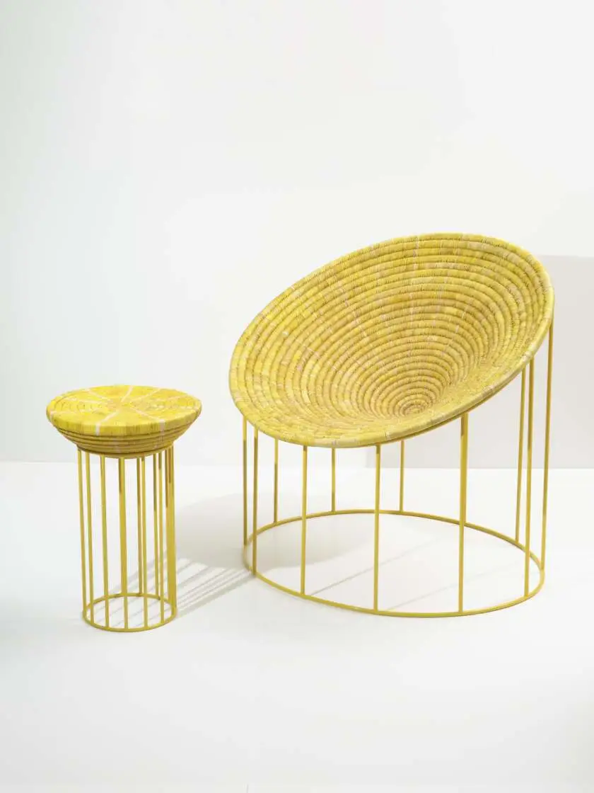 Okoma collection by hettler.tüllmann was created with artisans from Miami and People of the Sun, a social enterprise from Malawi that helps low-income artisans to build sustainable businesses while preserving their cultural heritage. Unique artifacts made of palm leaves, crafted in local basket weaving technique have emerged from this collaboration. Since every piece is made by hand each has a unique individual signature of the artisan. Available at Mindy Solomon Gallery