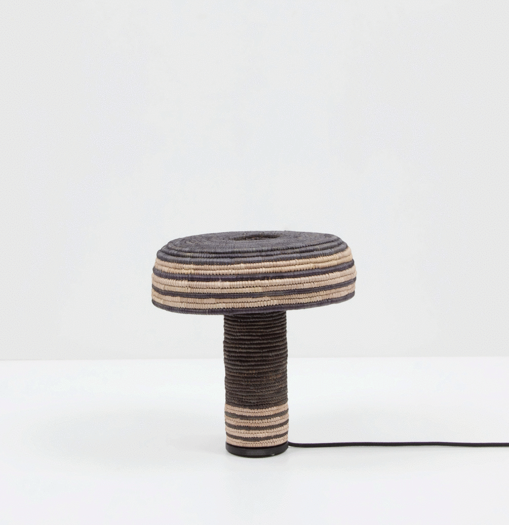 With the aim of finding new applications for the traditional weaving technique, a lamp was developed, that is composed of two simple geometric elements and takes up the existing materials palm leaves and traditional colours.